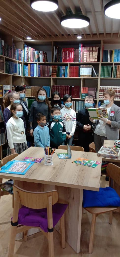25 января учащиеся 5г класса: Алиева Жулдыз, Даулеткул Алинур, Рубан Даниил, Мизиева Вероника присутствовали на открытии Детской библиотеки № 1. Библиотеку открыли после реконструкции. Двери детской библиотеки открыты для маленьких читателей. Администрация