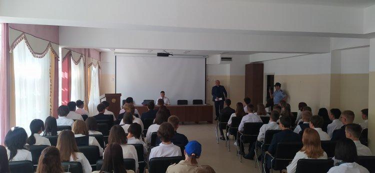 Кәмелетке толмағандар ин жөніндегі мектеп инспекторы, полиция аға лейтенанты хметов Нияз Ержанұлы, полиция аға лейтенанты, тергеуші Асылханов Жасұлан Берікұлы 8-11 сынып оқушыларына "қылмыстық жауаптылық жасы", "есірткі қылмысының алдын алу", "зорлық-зомбылықтың құрбаны болмау және өз құқықтарын қорғау үшін қайда жүгіну керек"тақырыптарында кәсіби сұхбат өткізді