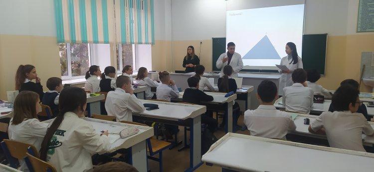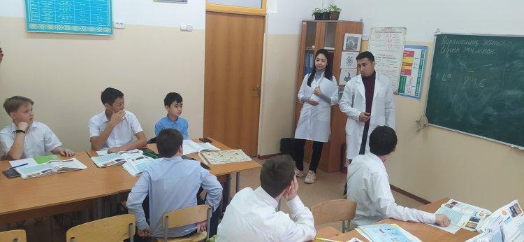 Сотрудники поликлиники №9, отдела психологической и социальной помощи Асимов Маир Маратович психолог, Искакова Айдана Талгатовна психолог, Жаркымбек Саят Куатжанович социальный работник провели беседу с учащимися 6-7 классов на тему "Вейп вред для здоровья".