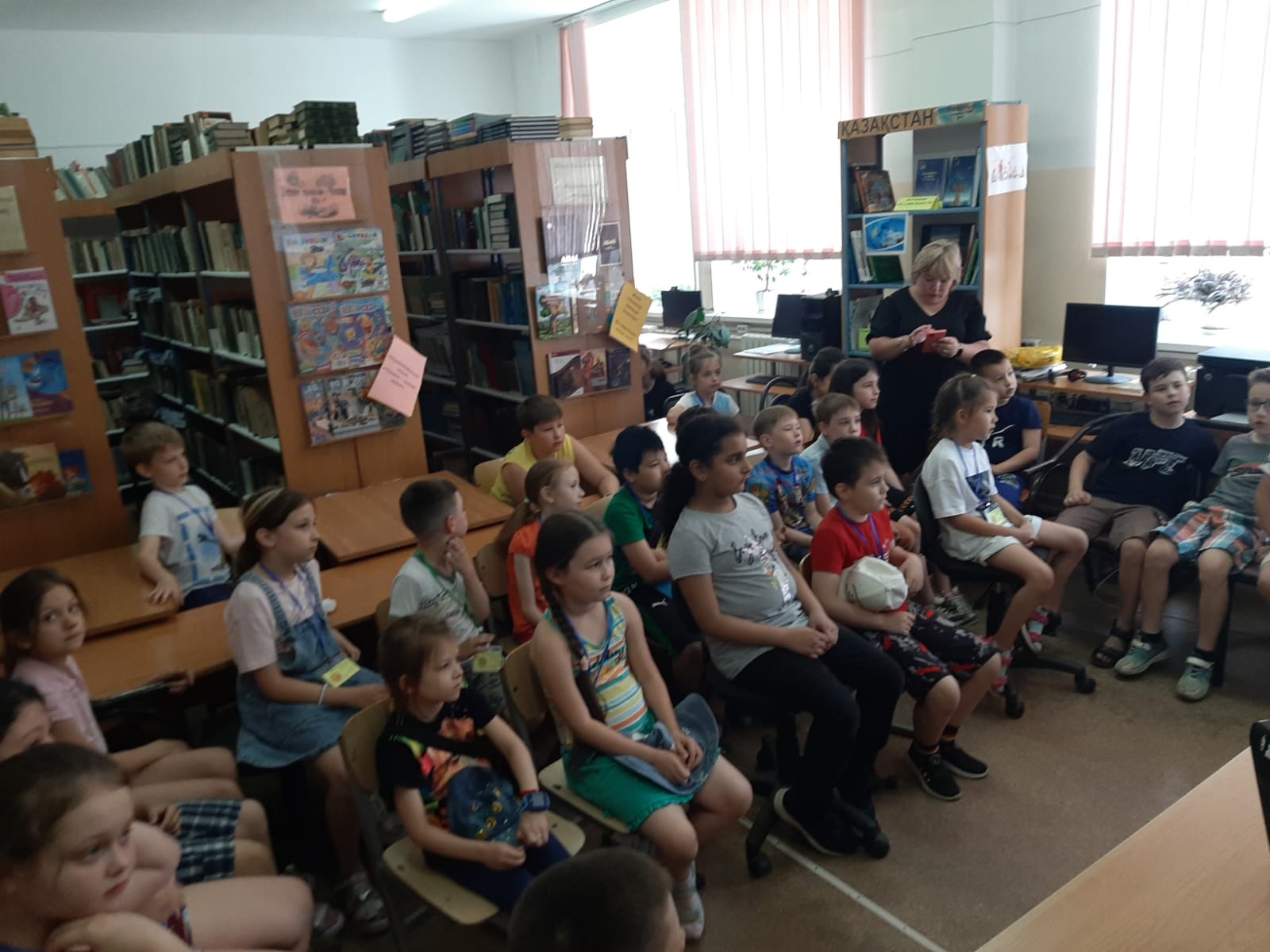 "Алтын күн" мектеп жанындағы лагерінің оқушылары "оқу мектебі" жобасы аясында мектеп кітапханасына барып, А.С. Пушкиннің ертегілері бойынша әдеби викторинаға қатысты. Балалар сұрақтарға нақты жауап беріп, командада жұмыс істеуді үйренді. Көңілді және қызықты болды.