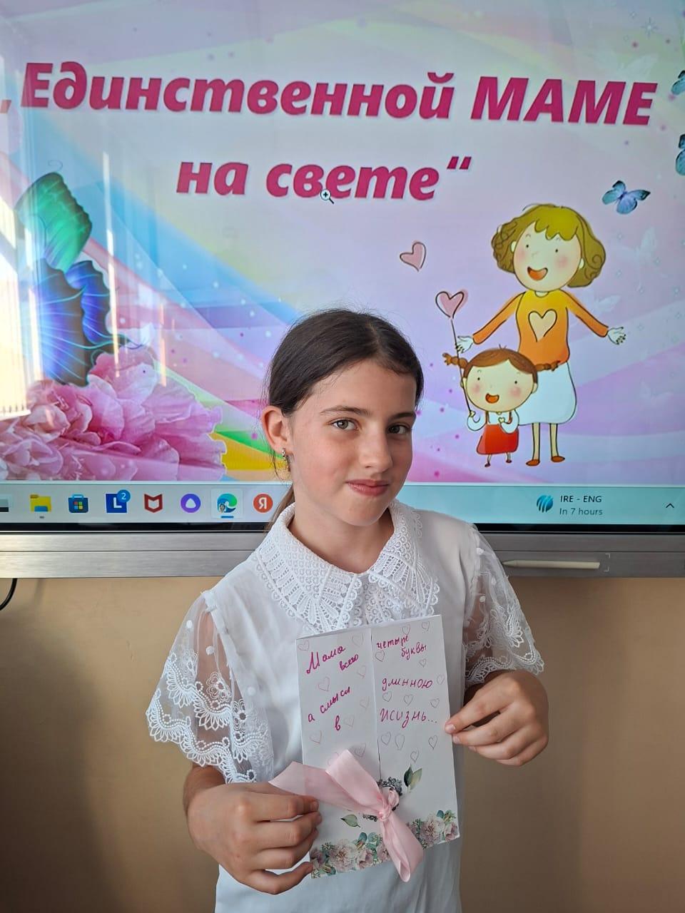 В рамках данного мероприятия учащиеся 5-х классов приняли участие в выставке открыток-поздравлений, созданных собственными руками. Работы отличались искренностью, теплотой и креативным подходом. Мероприятие способствовало развитию творческих способностей учащихся, формированию уважительного и бережного отношения к матери, укреплению семейных ценностей. Активное участие в организации и проведении мероприятия приняли классные руководители 5-х классов, обеспечив вовлеченность каждого ученика.