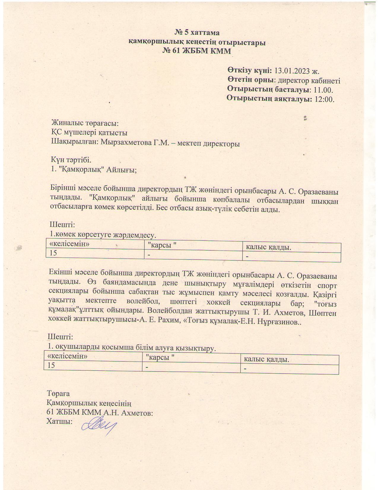 13 январь 2023 0 1 2 3 4 5 Протокол № 5 ПС Хаттама № 5 Протокол ПС от 13.01.2023г. Осы беттің QR-коды:QR-код этой страницы: