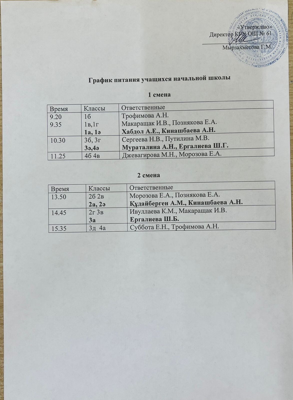 График дежурства учителей