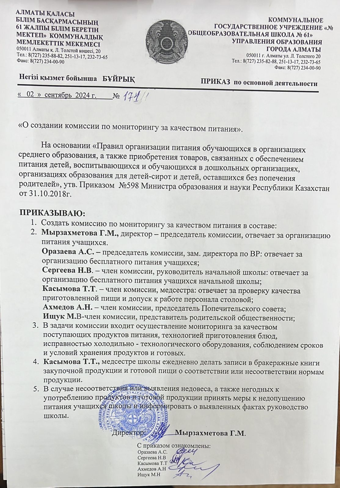 10 сентябрь 2024 0 1 2 3 4 5 Приказ о создании комиссии по мониторингу за качеством питания Осы беттің QR-коды:QR-код этой страницы: