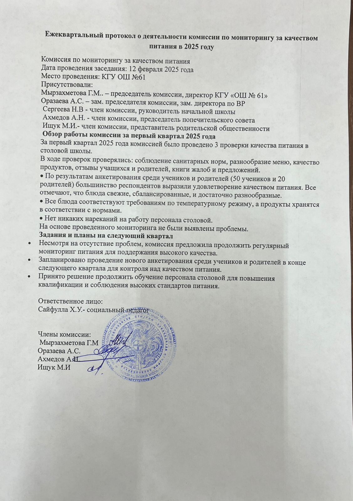 28 февраль 2025 0 1 2 3 4 5 Ежеквартальные протокола о деятельности комиссии по мониторингу за качеством питания в 2025 году Осы беттің QR-коды:QR-код этой страницы: