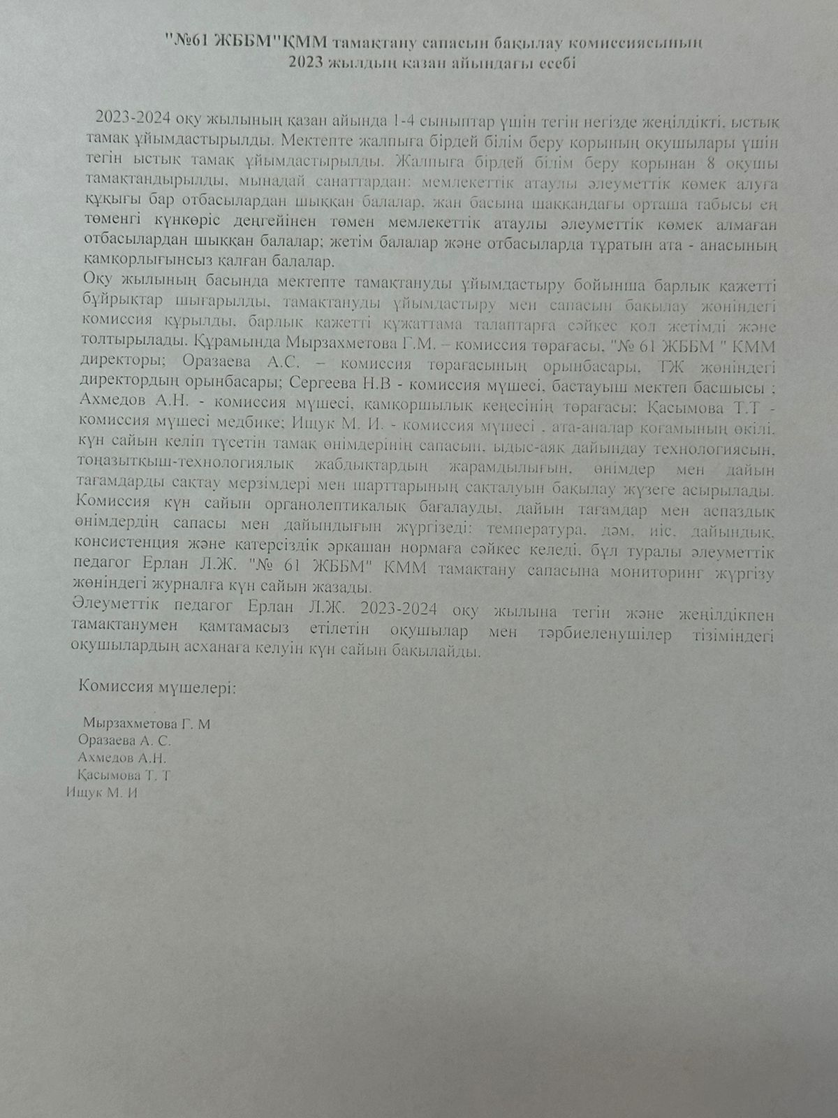 27 октябрь 2023 0 1 2 3 4 5 Отчет комиссии по мониторингу за качеством питания за октябрь 2023-2024 г,Тамақтану сапасын бақылау комиссиясының 2023-2024 ж қазан айындағы есебі Осы беттің QR-коды:QR-код этой страницы:
