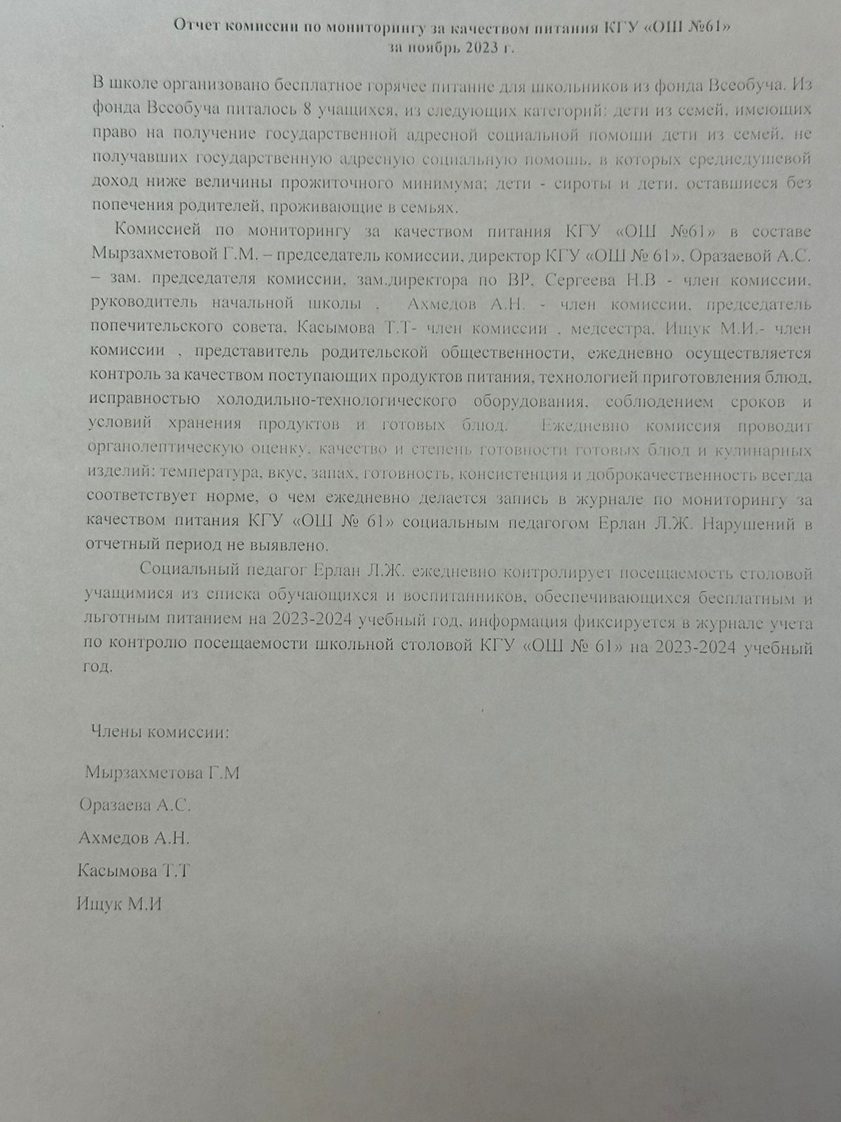 30 ноябрь 2023 0 1 2 3 4 5 Отчет комиссии по мониторингу за качеством питания за ноябрь 2023-2024 г Осы беттің QR-коды:QR-код этой страницы: