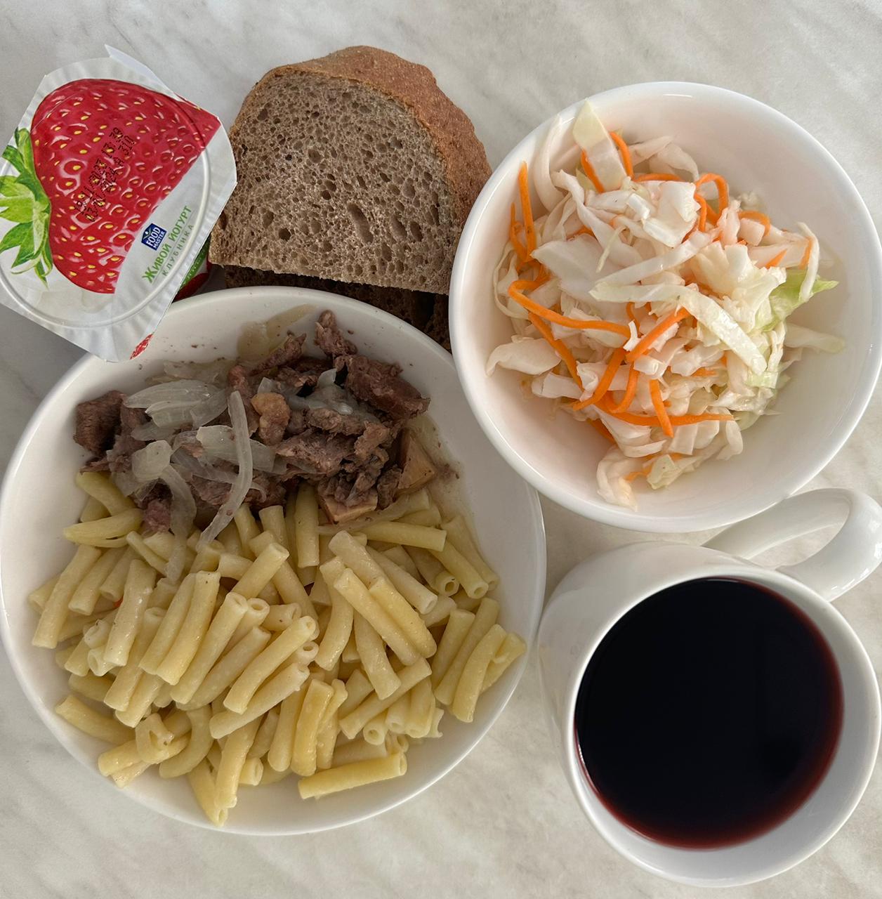 Меню: гуляш (говядина) Гарнир: макароны отварные