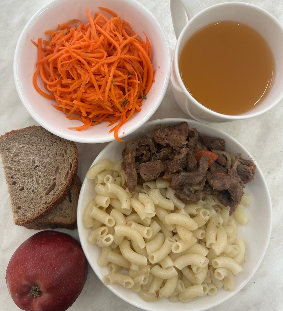 Меню: Гуляш(говядина) Гарнир: макароны отварные