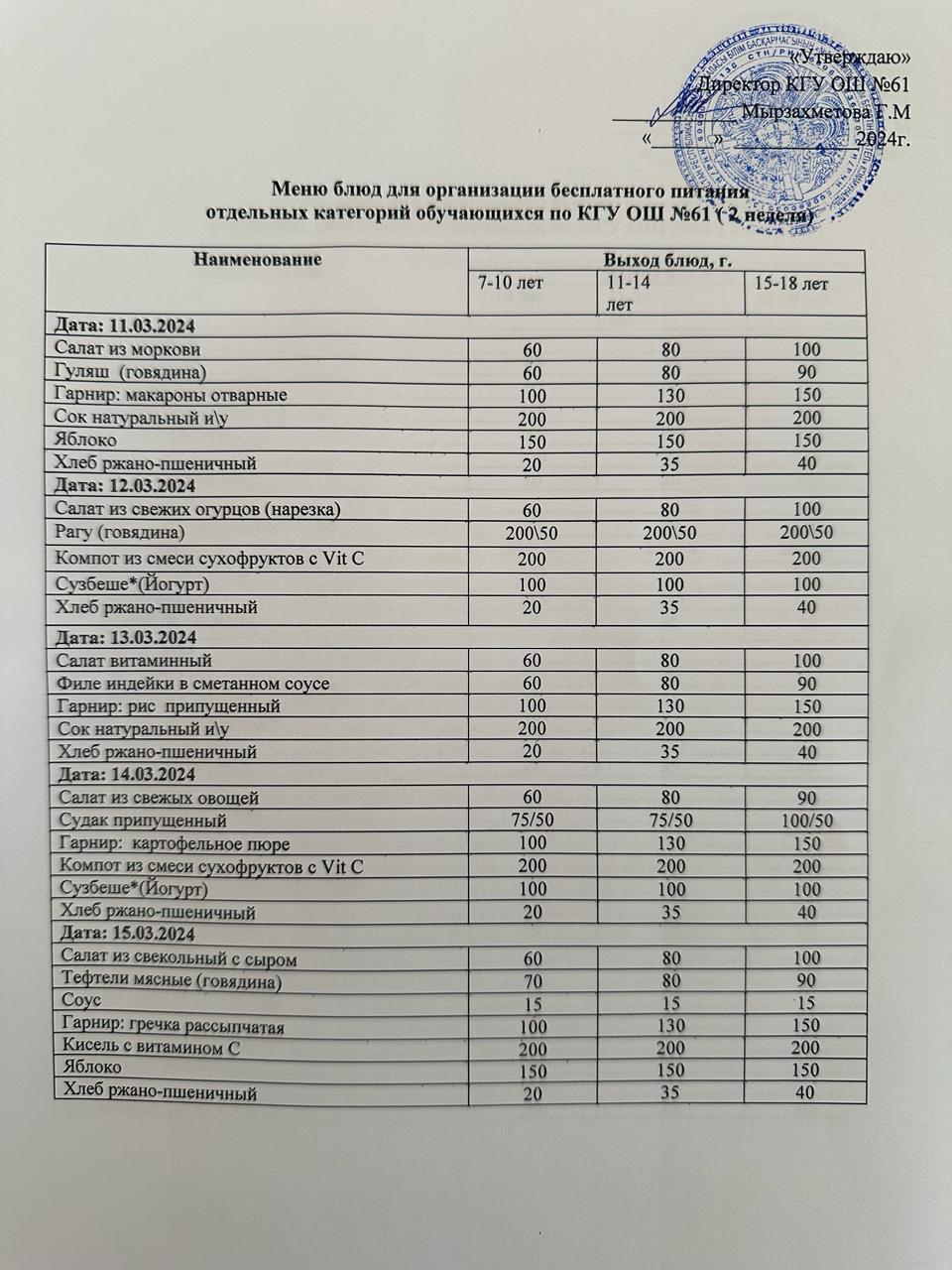 Меню 2 неделя (11.03-15.03.2024)